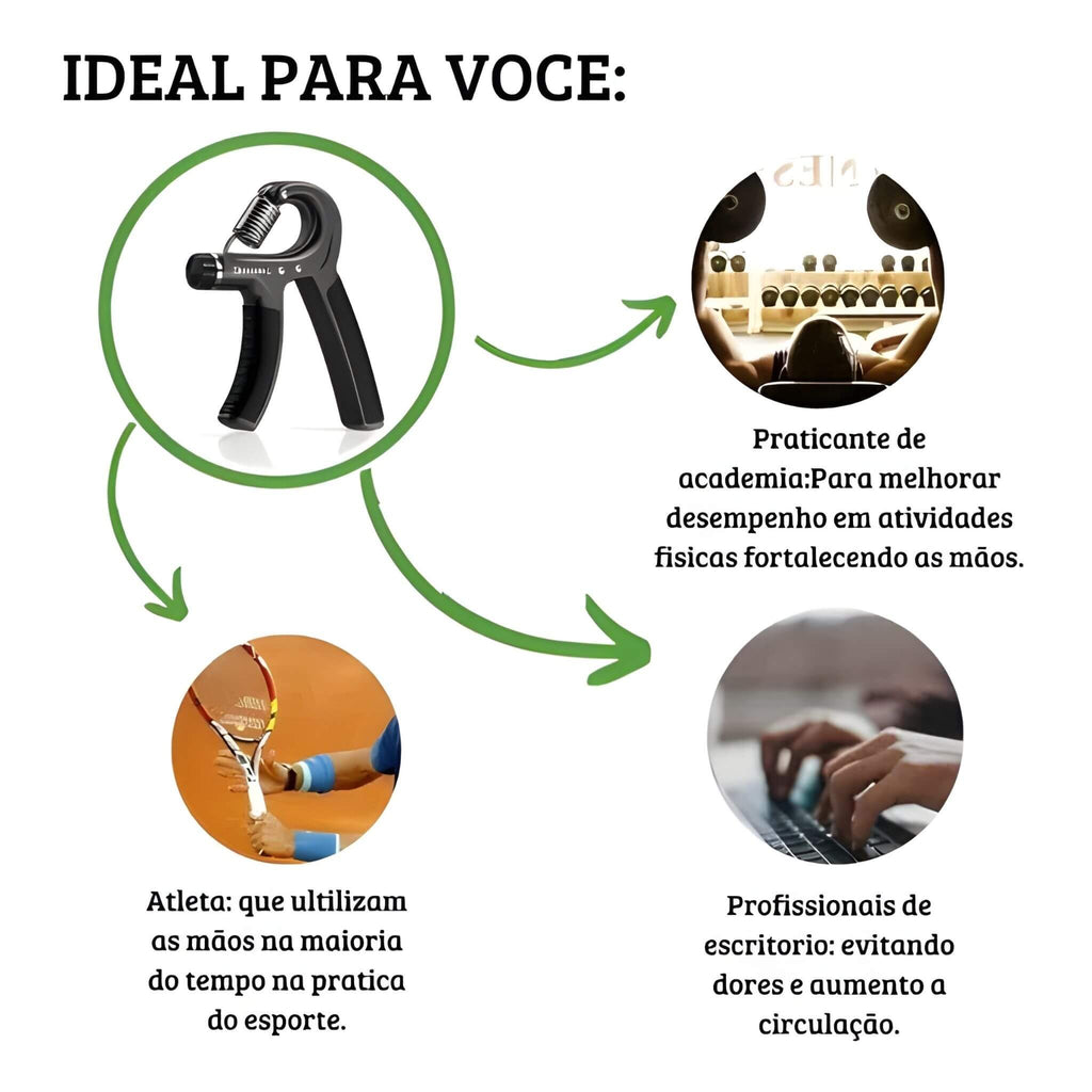 Este exercitador de mãos e antebraços é perfeito para aqueles que buscam melhorar a força dos dedos, punho e antebraço, ou somente se desestressar. Além disso, é compacto e fácil de transportar, o que o torna perfeito para o uso em casa ou no escritório.